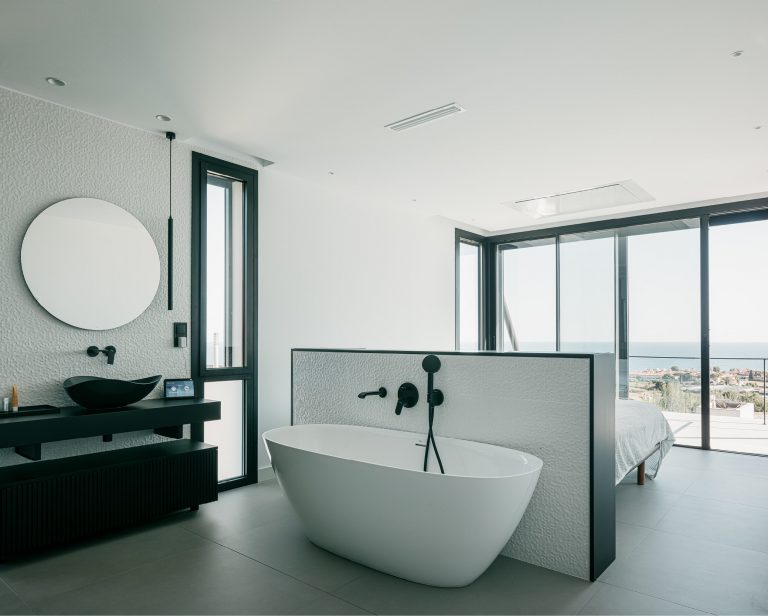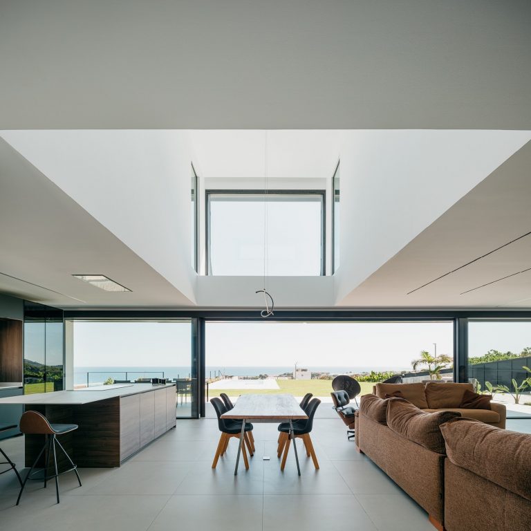 Cada estança està pensada per mantenir una relació directa amb l’exterior. Les façanes vidriades projecten la mirada cap al mar, convertint la llum i les vistes en materials essencials de l’arquitectura.